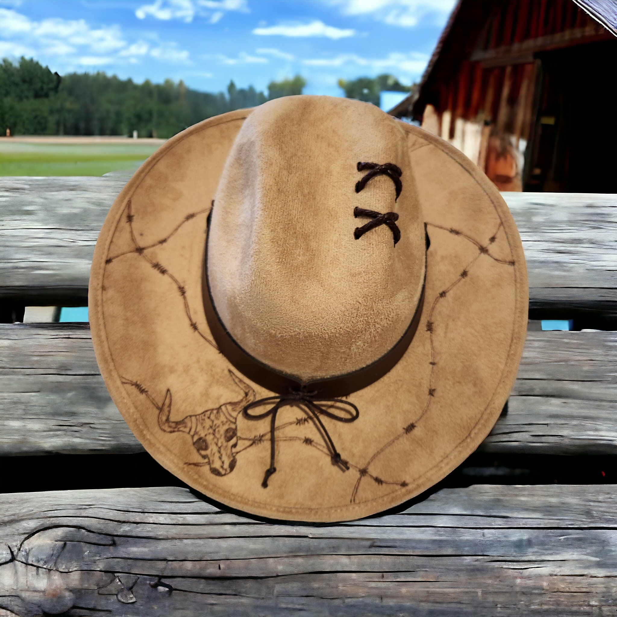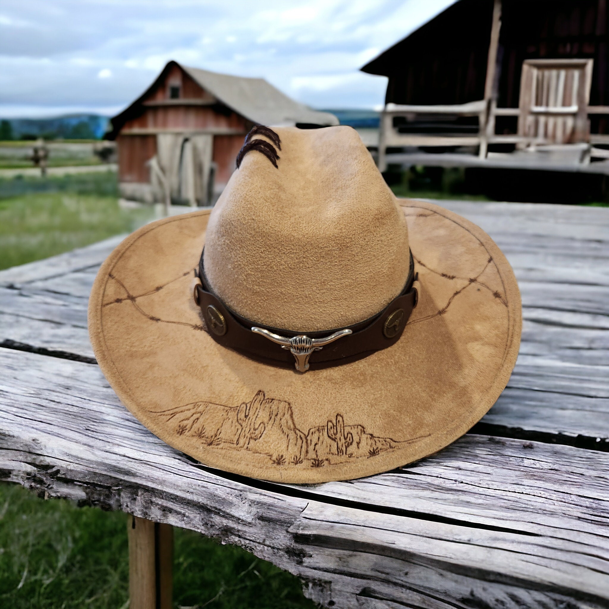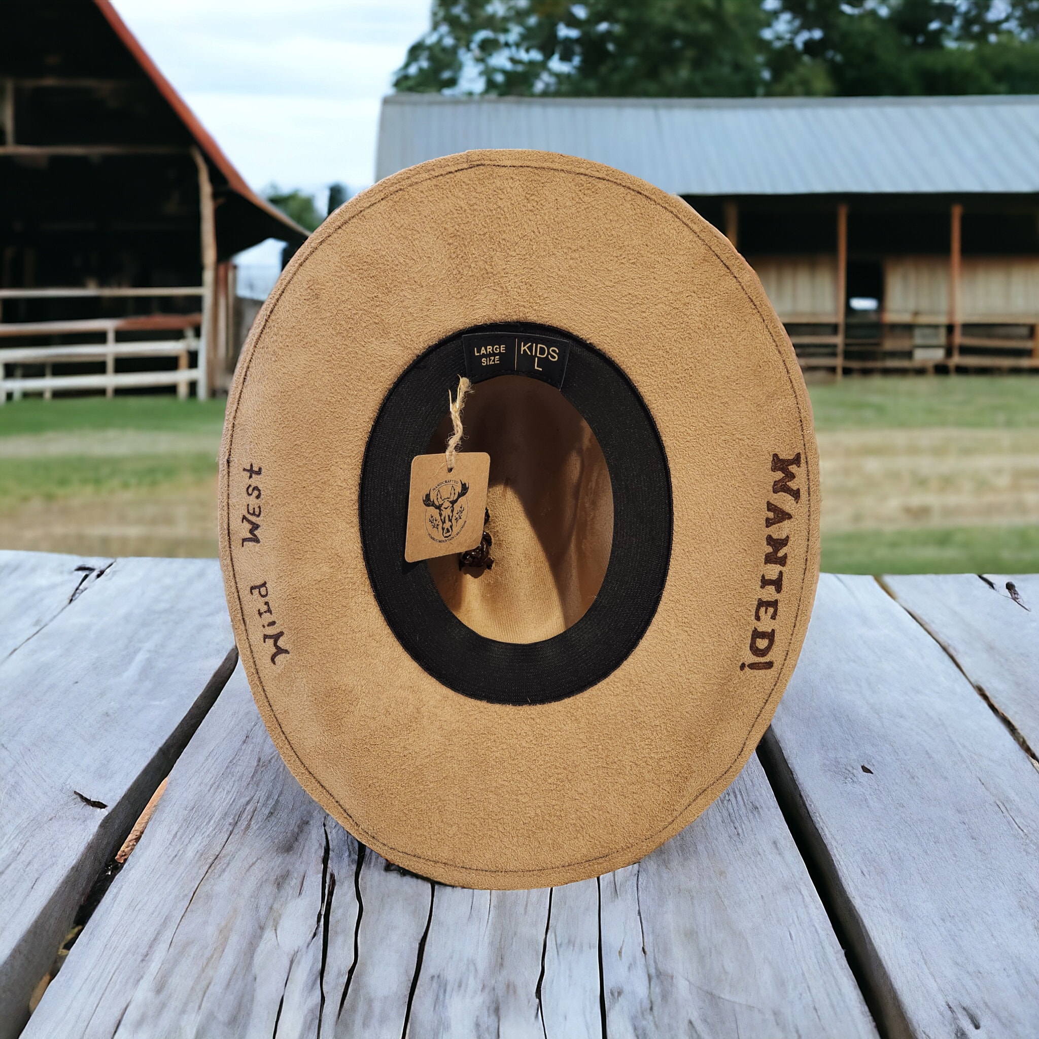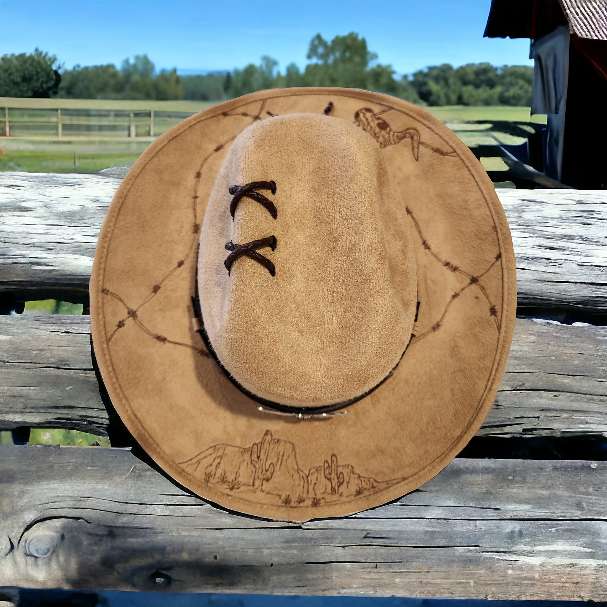 Nice light brown kids cowboy hat. Rodeo theme burned into brim.
