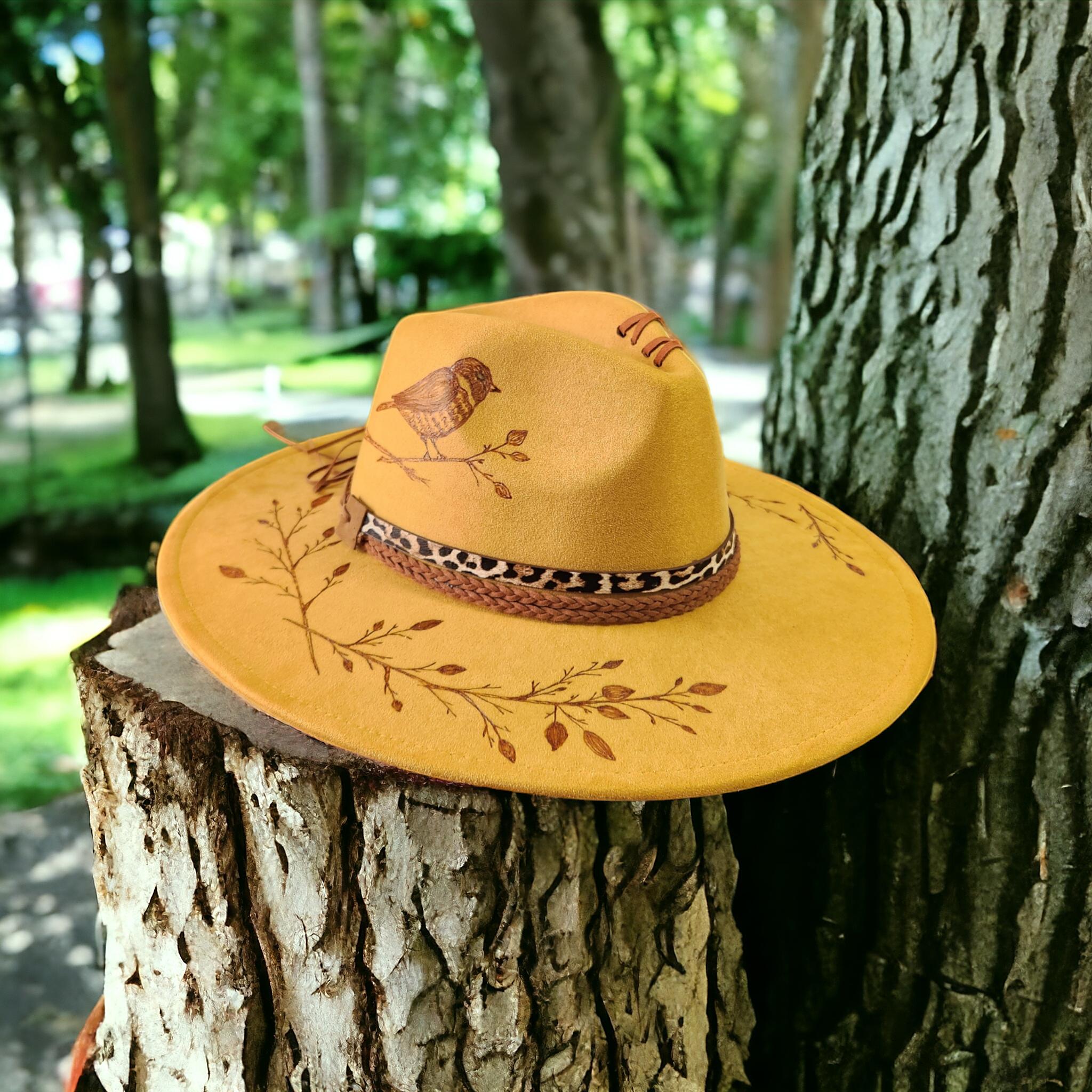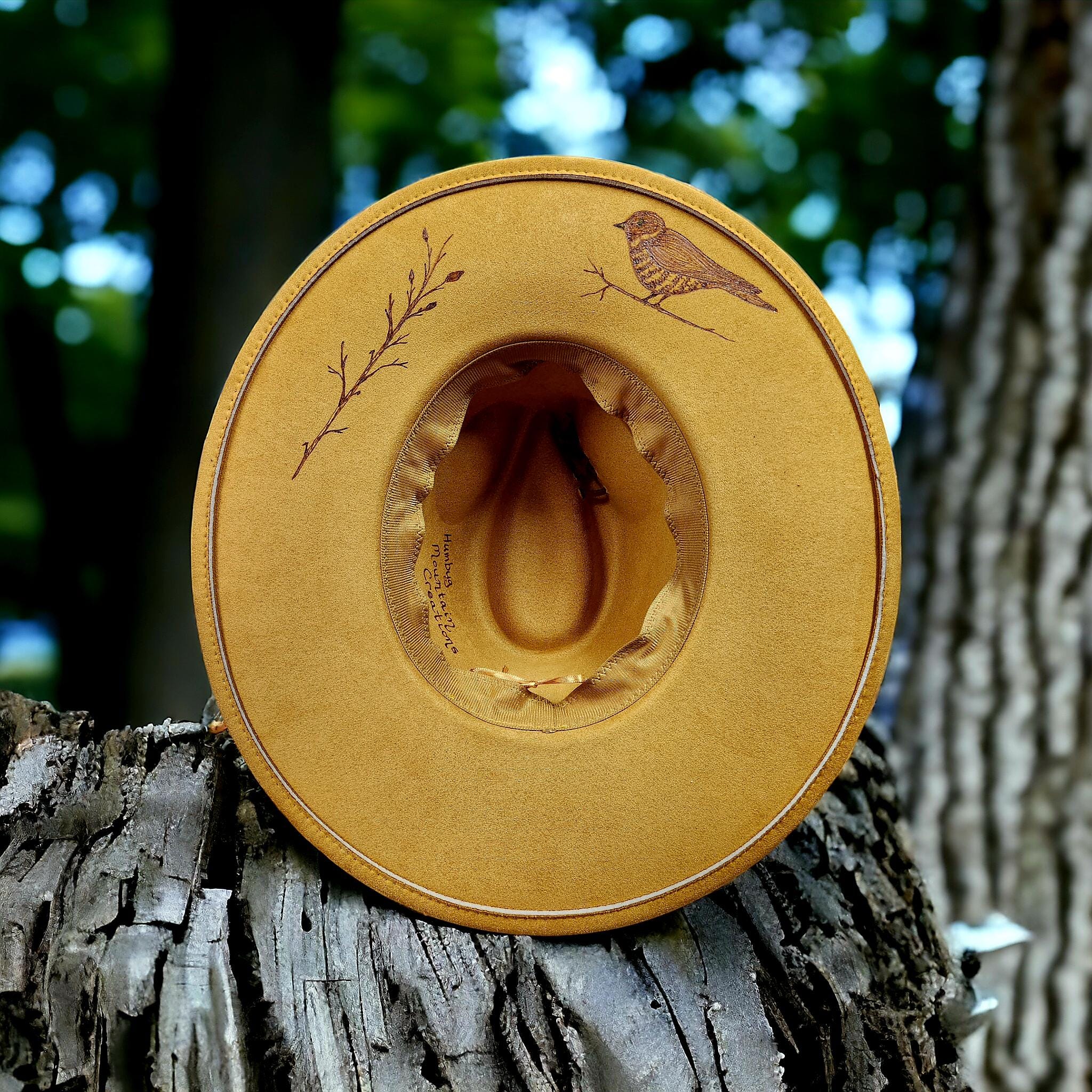 Hand Burned with beautiful birds sitting on tree limbs.