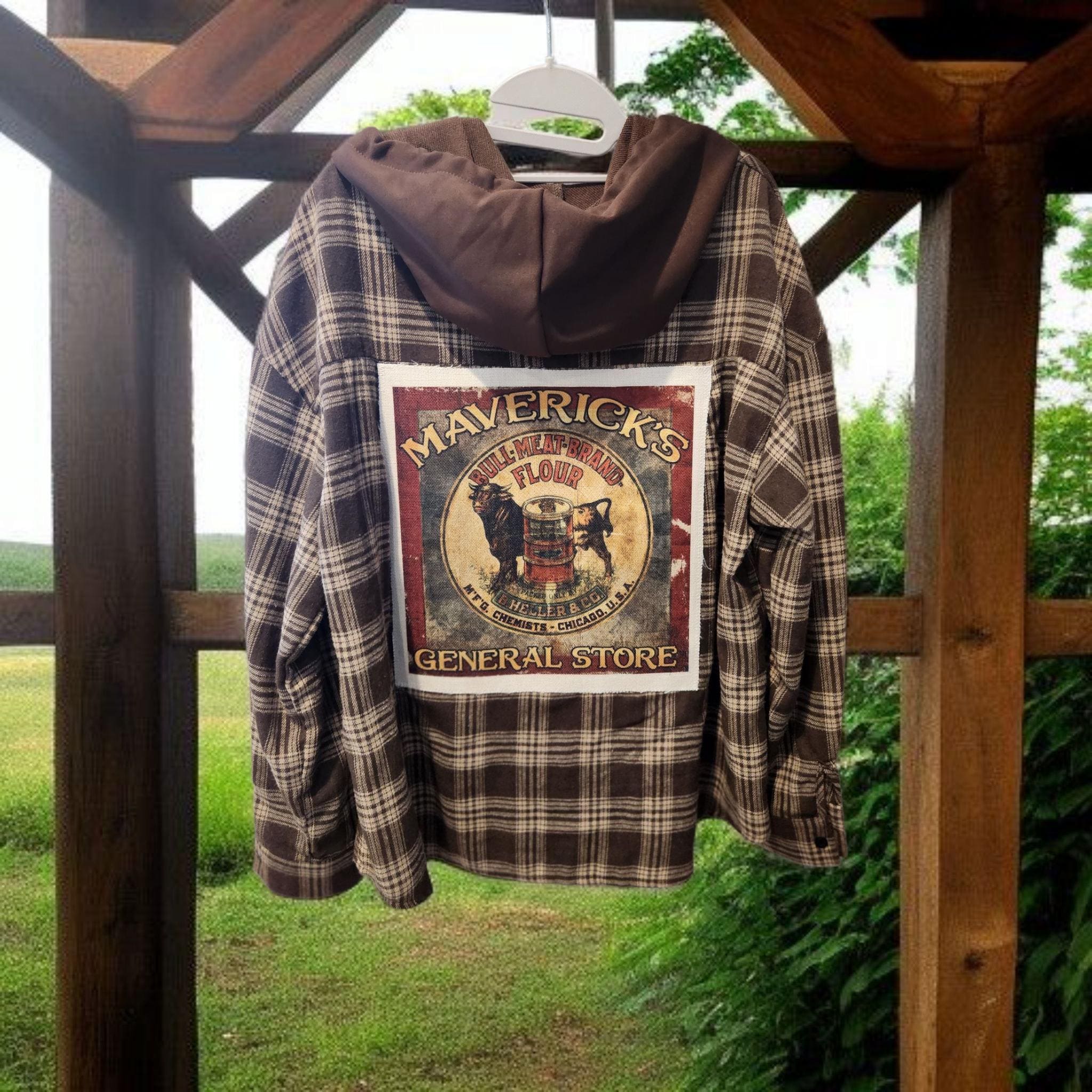 Hooded cotton/polyester blend plaid flannel like women's shirt - size women's XX-large