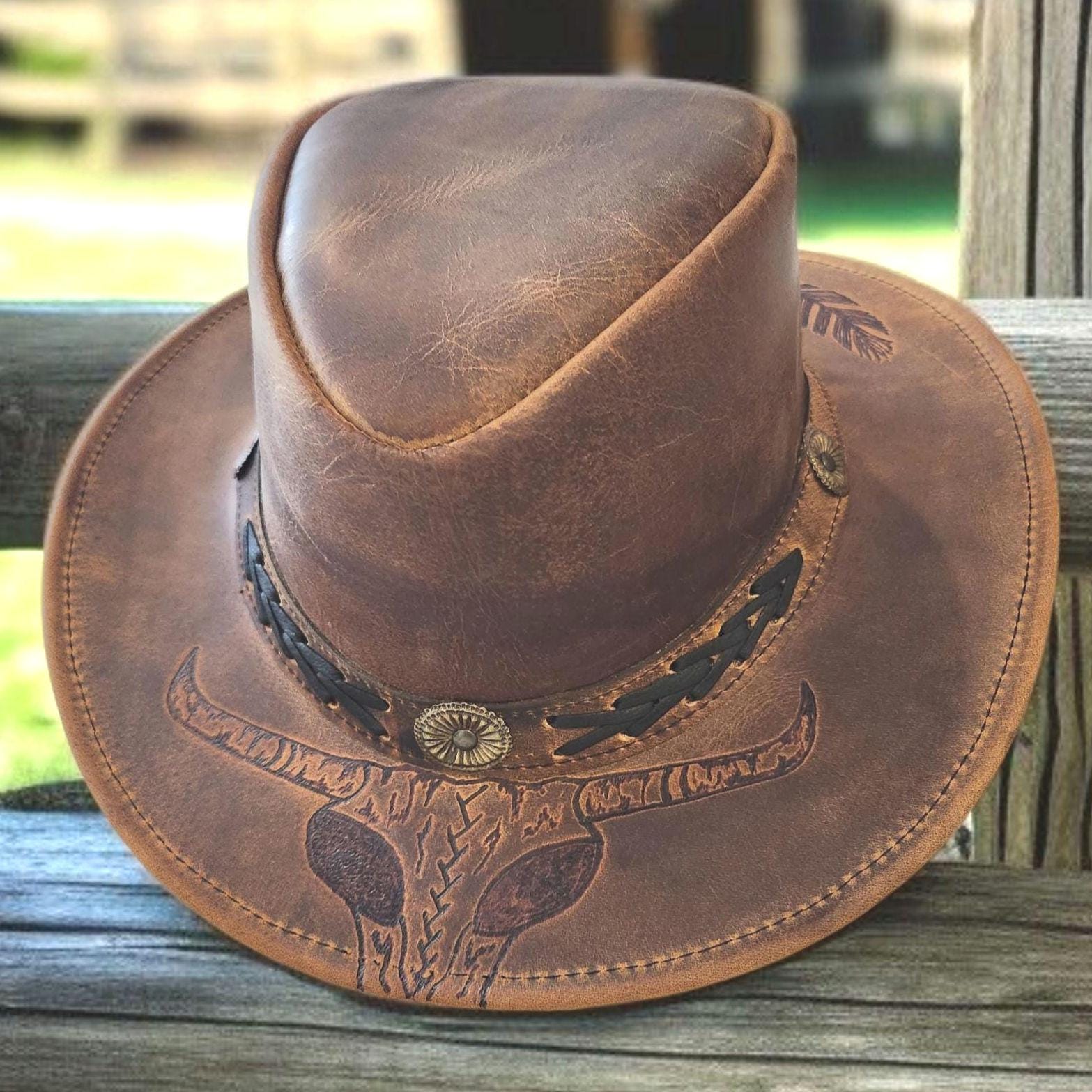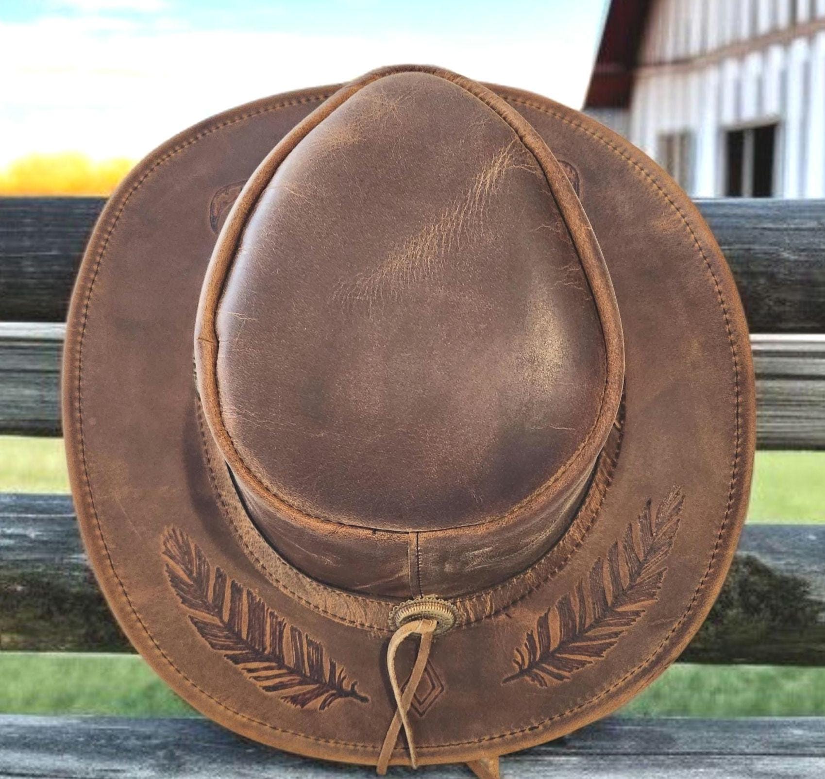 Very nice, high quality, brown Genuine Leather cowboy - rancher hat.