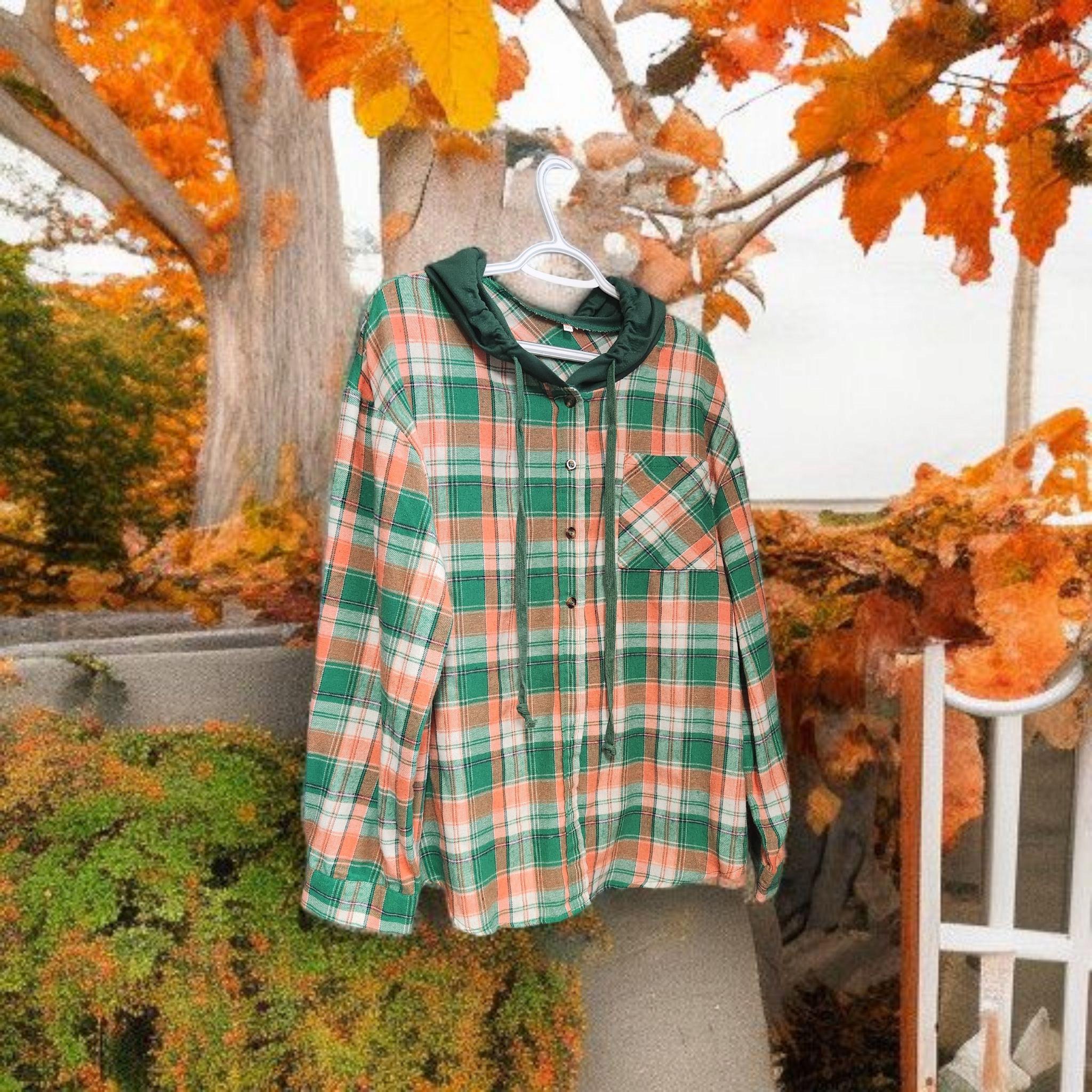 Hooded cotton/polyester blend plaid flannel like women's shirt - size women's X-large