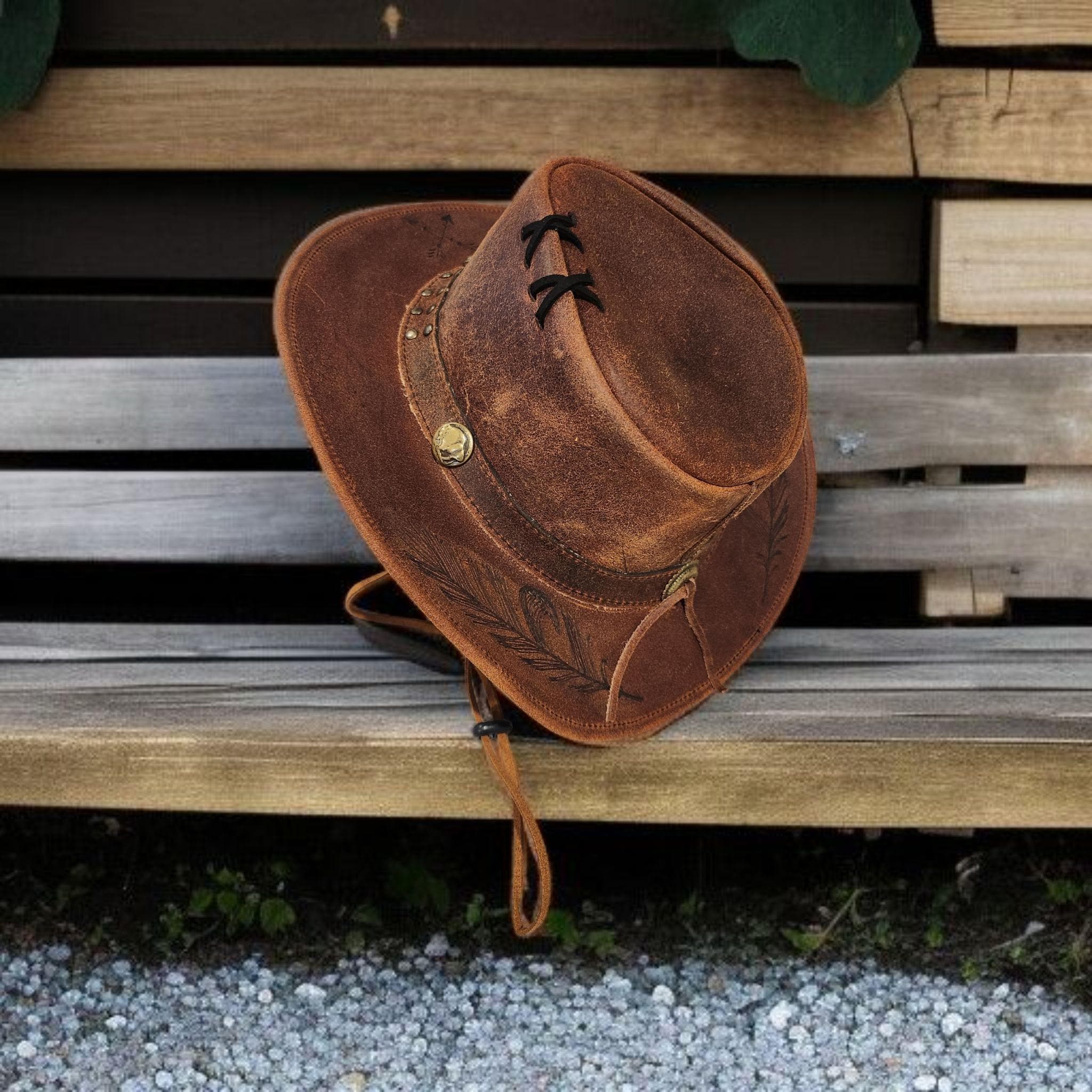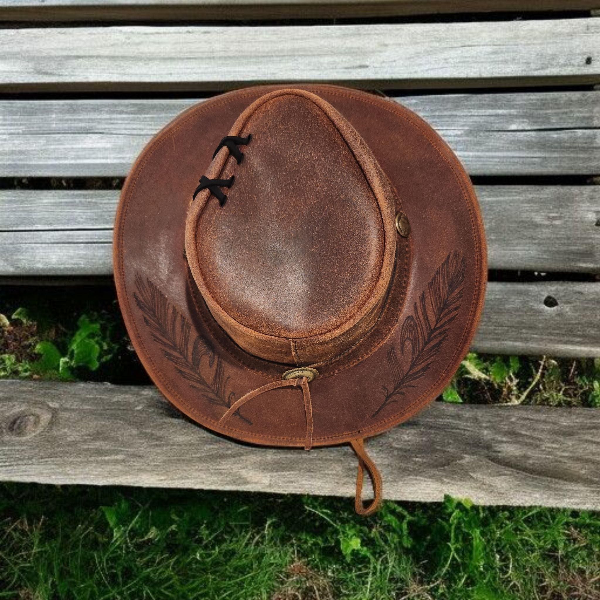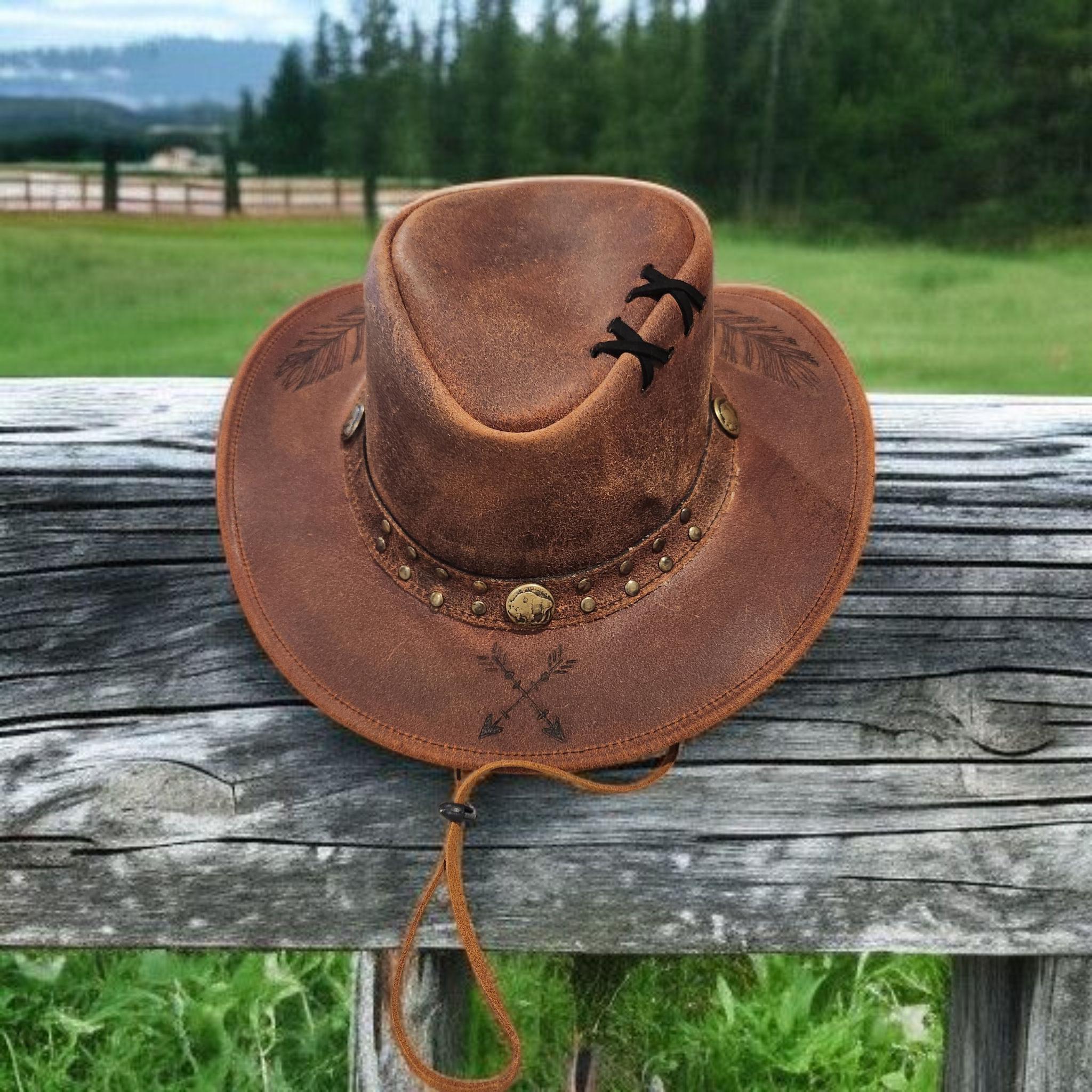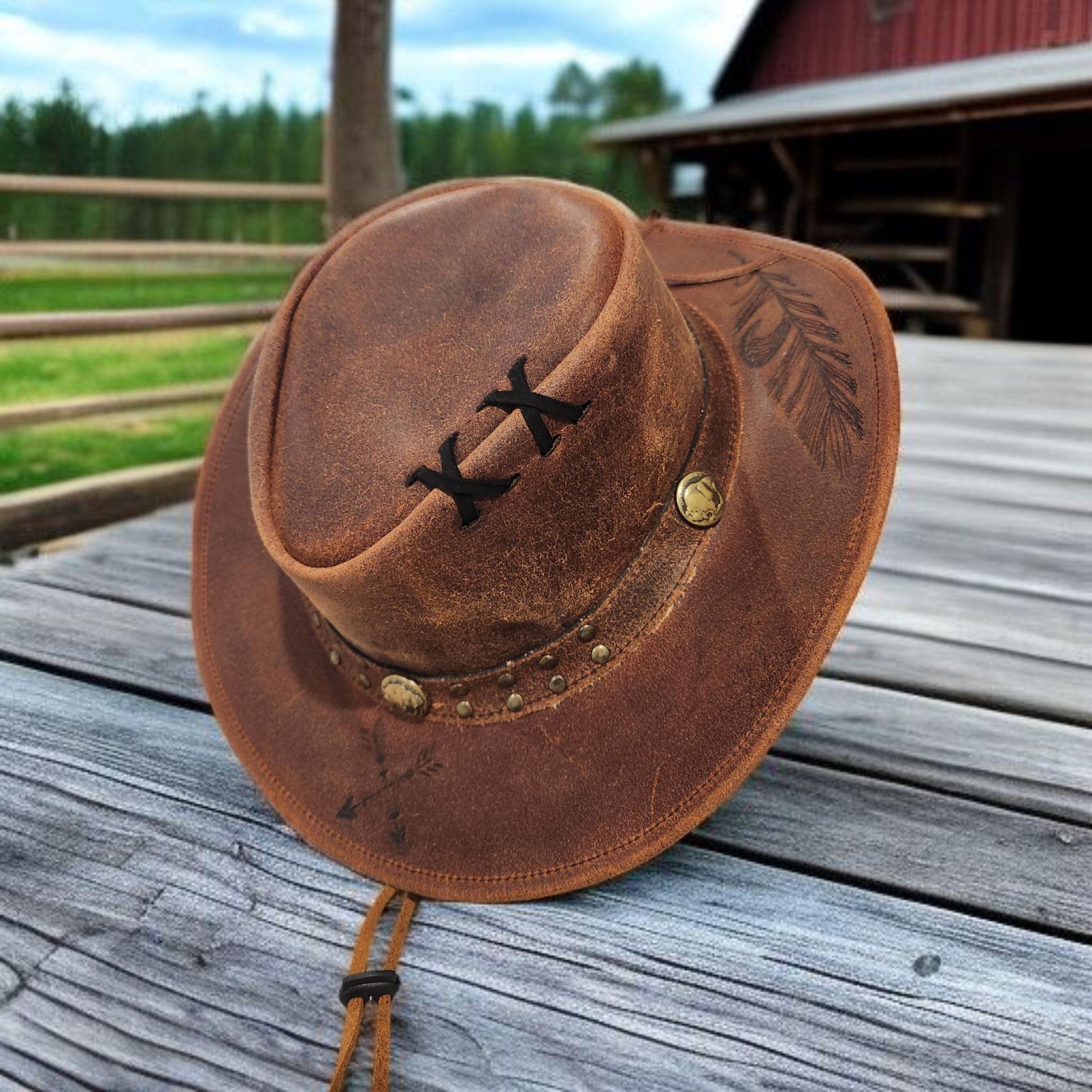 Very nice, high quality, brown Genuine Leather cowboy - rancher hat.