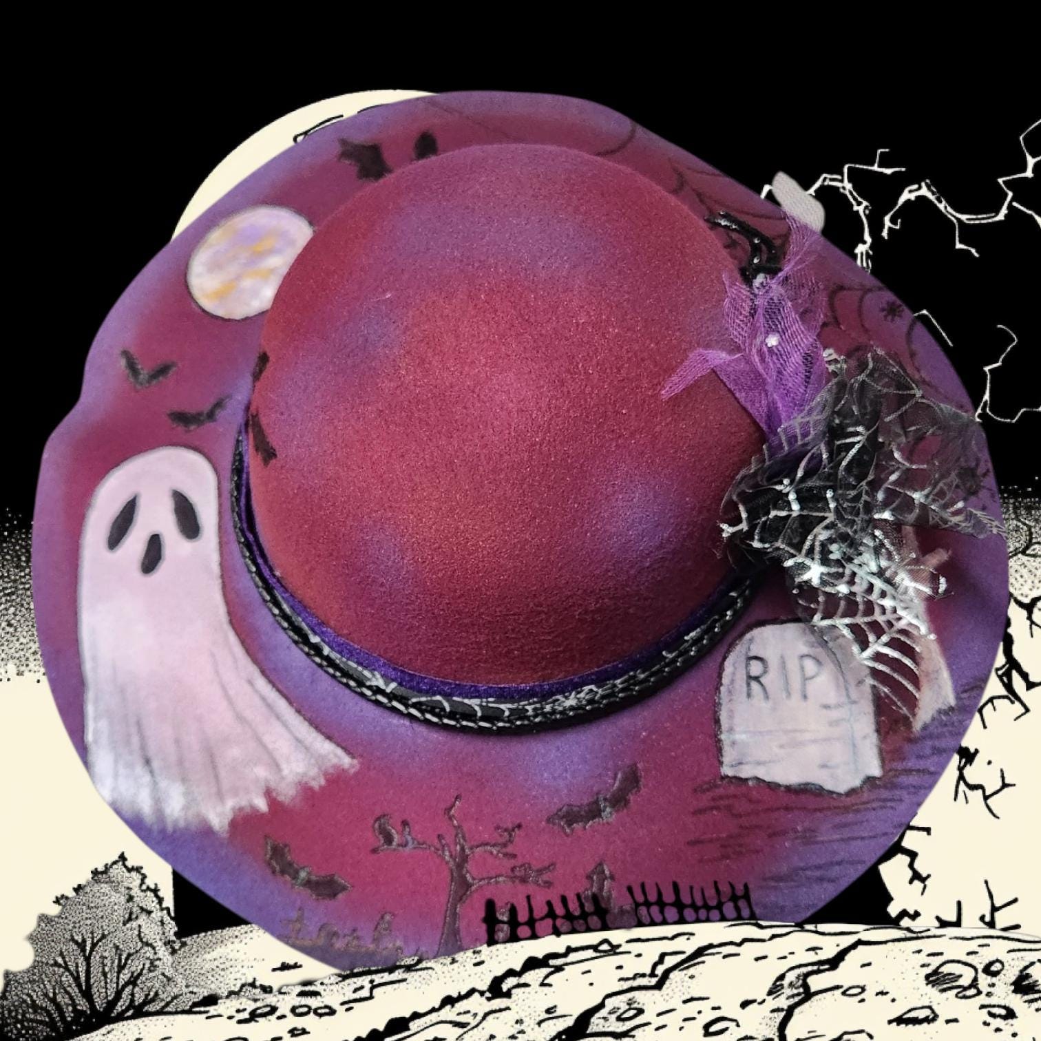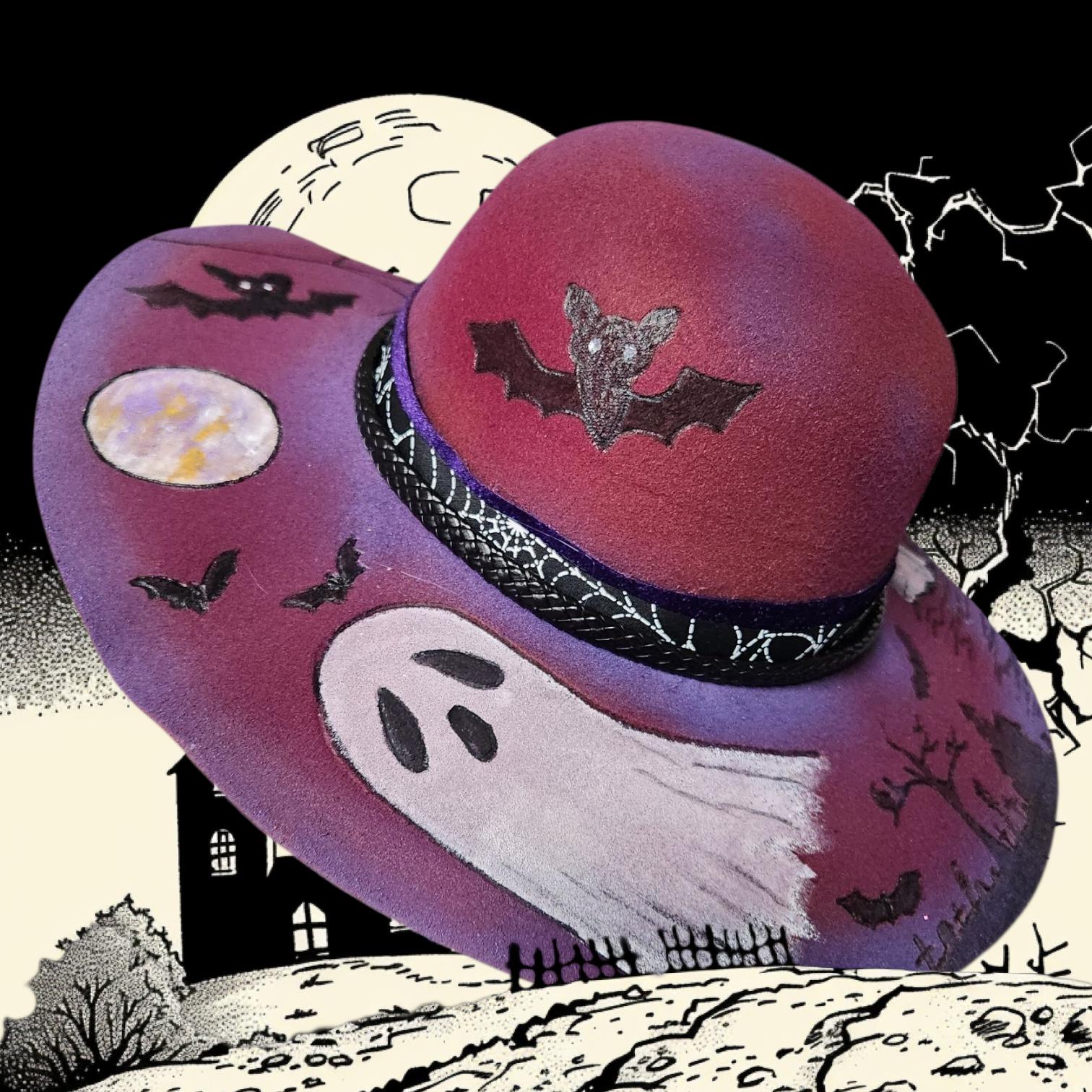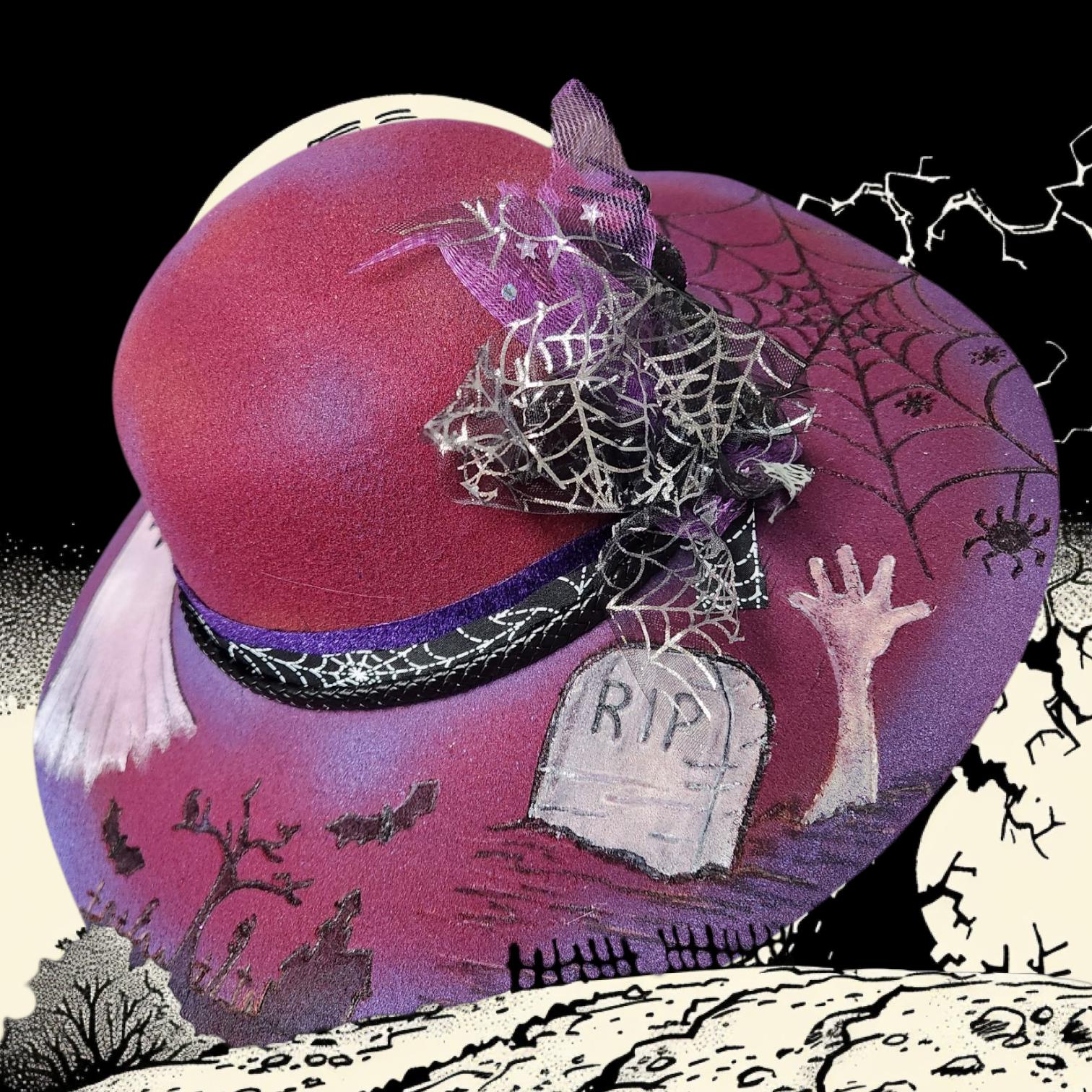 Really Fun burgundy and purple colored wide brim felt Hat.