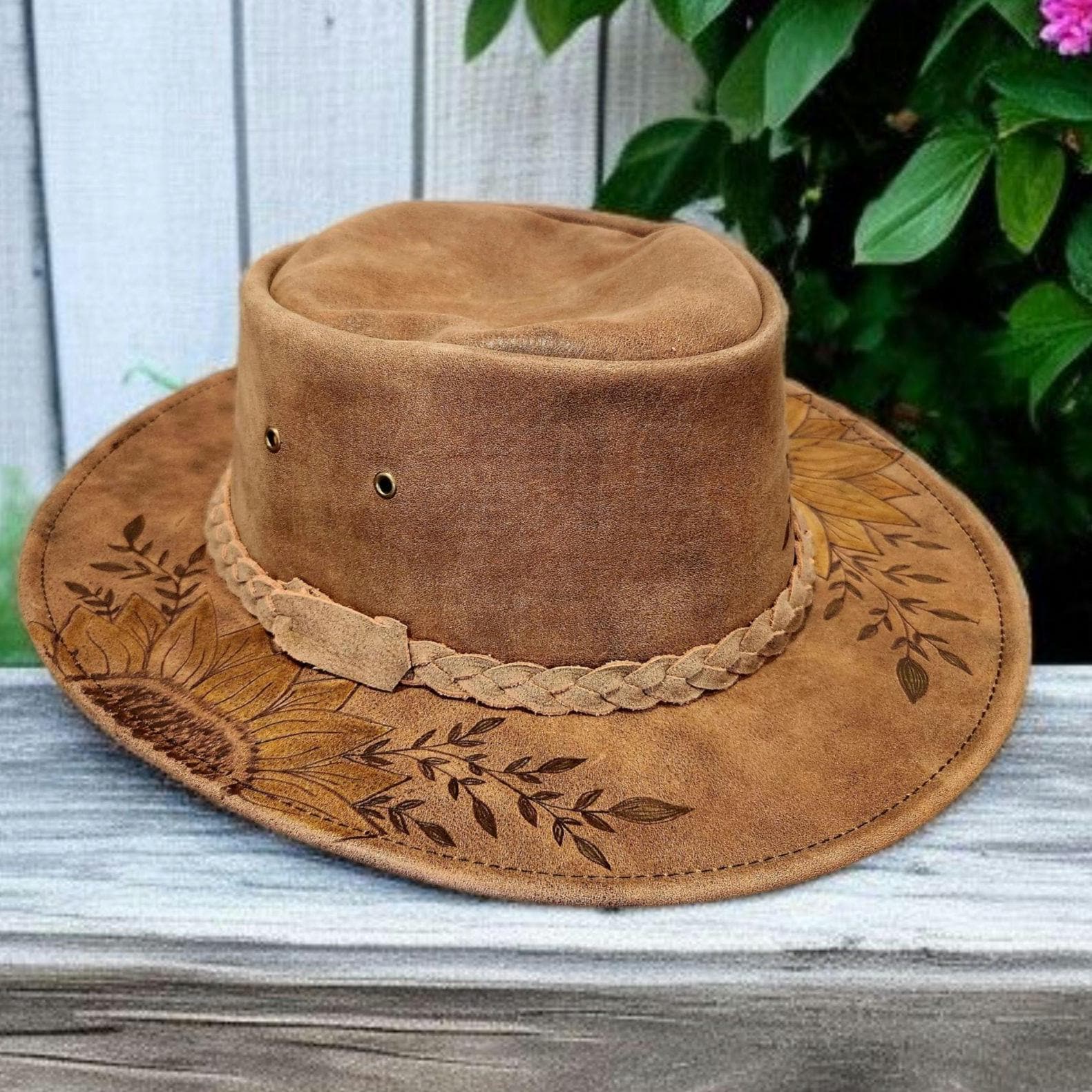 Very nice, high quality, brown Genuine Leather cowboy - rancher hat.