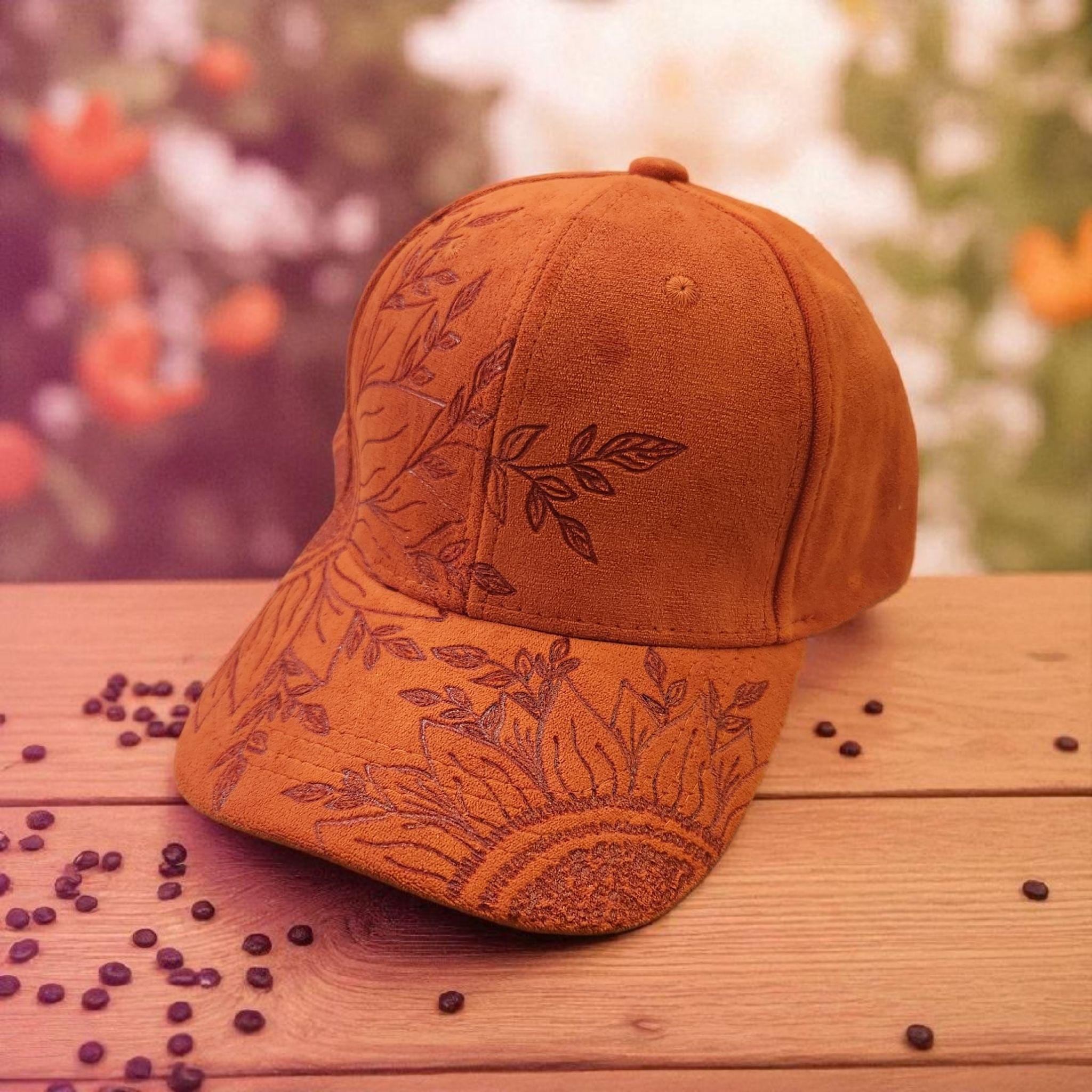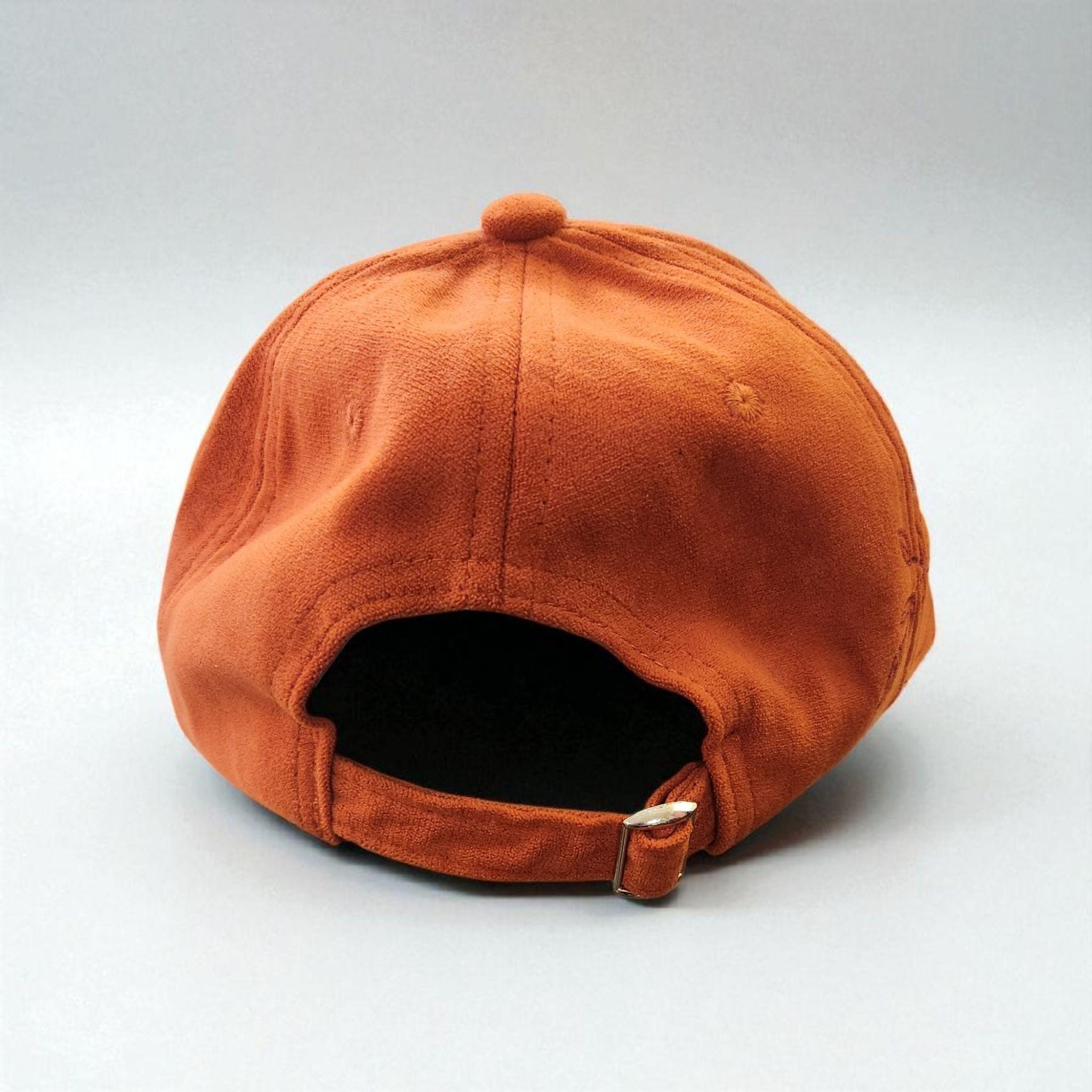 Really cute vegan suede baseball hat in a pretty orange color.