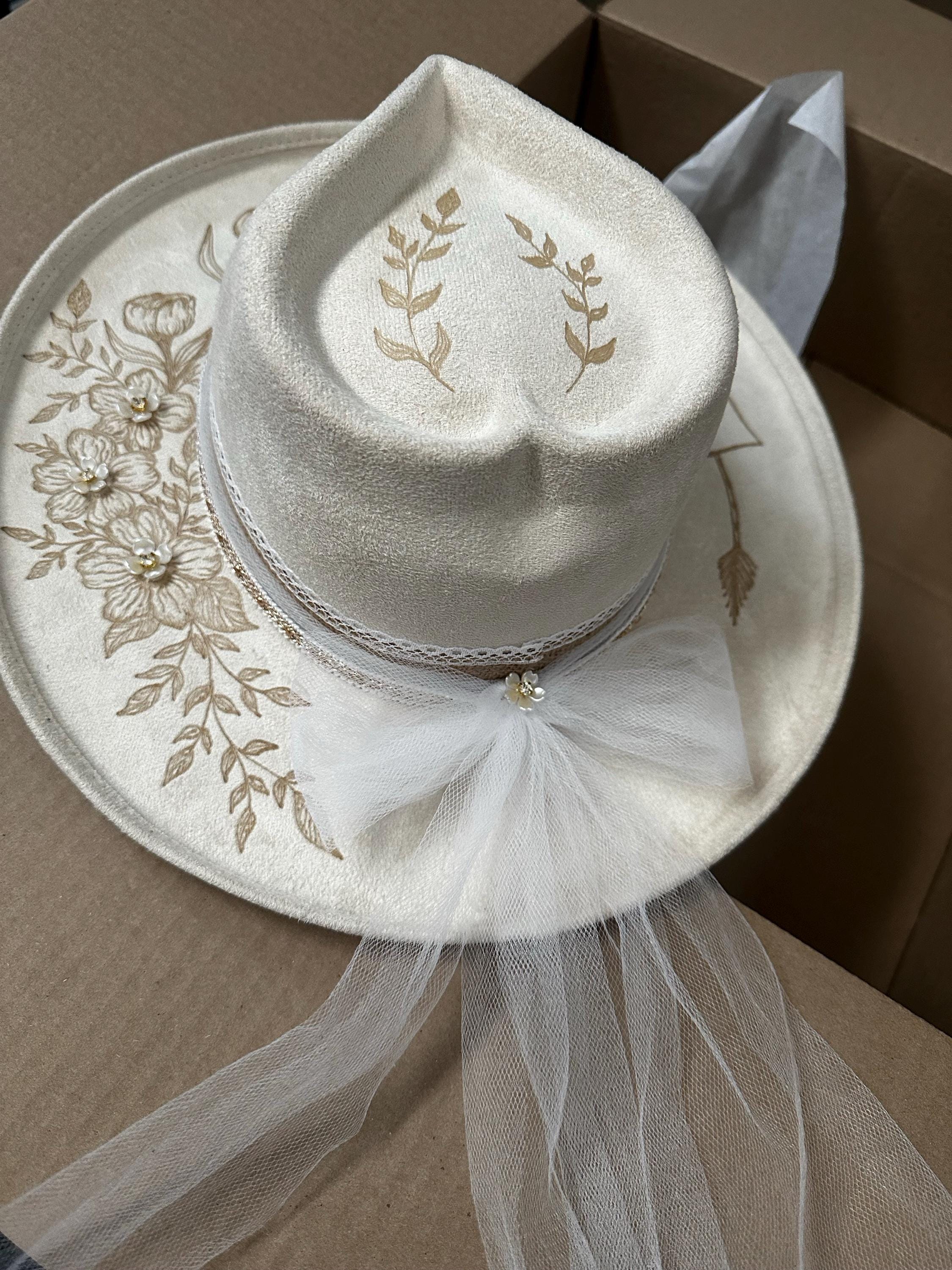 Custom Hats for your wedding. I have a number of different hat styles from basic cowboy, rancher, Fedora and more. Narrow or wide brim in most sizes and colors to match your wedding.