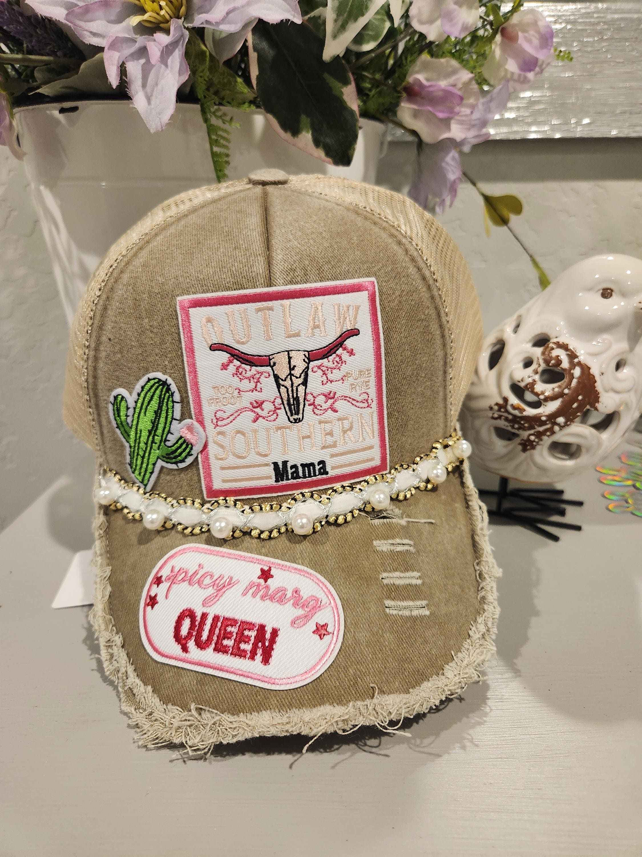 Really cute baseball cap with bling. Hand crafted with patches and chains. Super cute hat for your favorite gal !