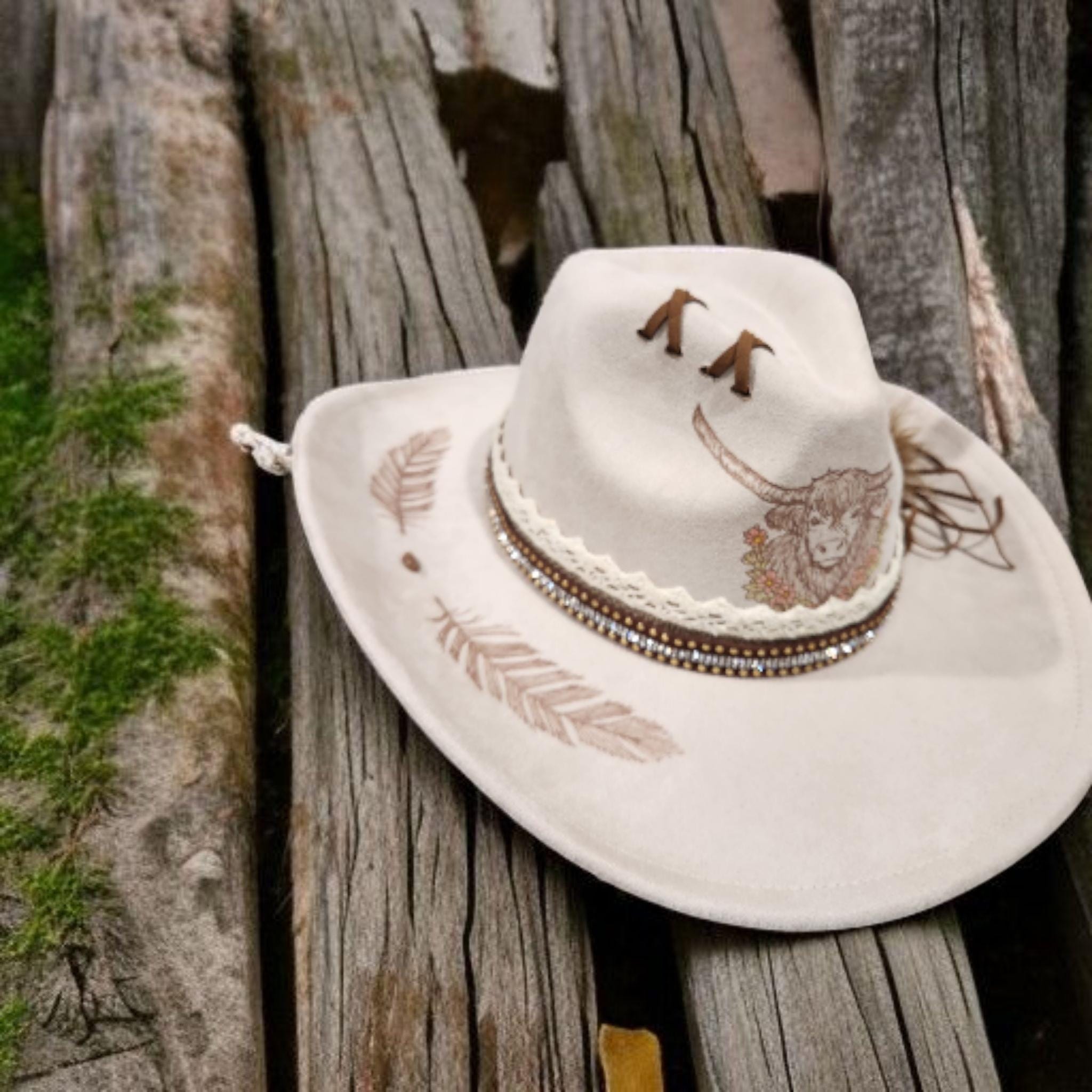 Really pretty creamy beige colored "faux"suede cowboy - Rancher Hat.