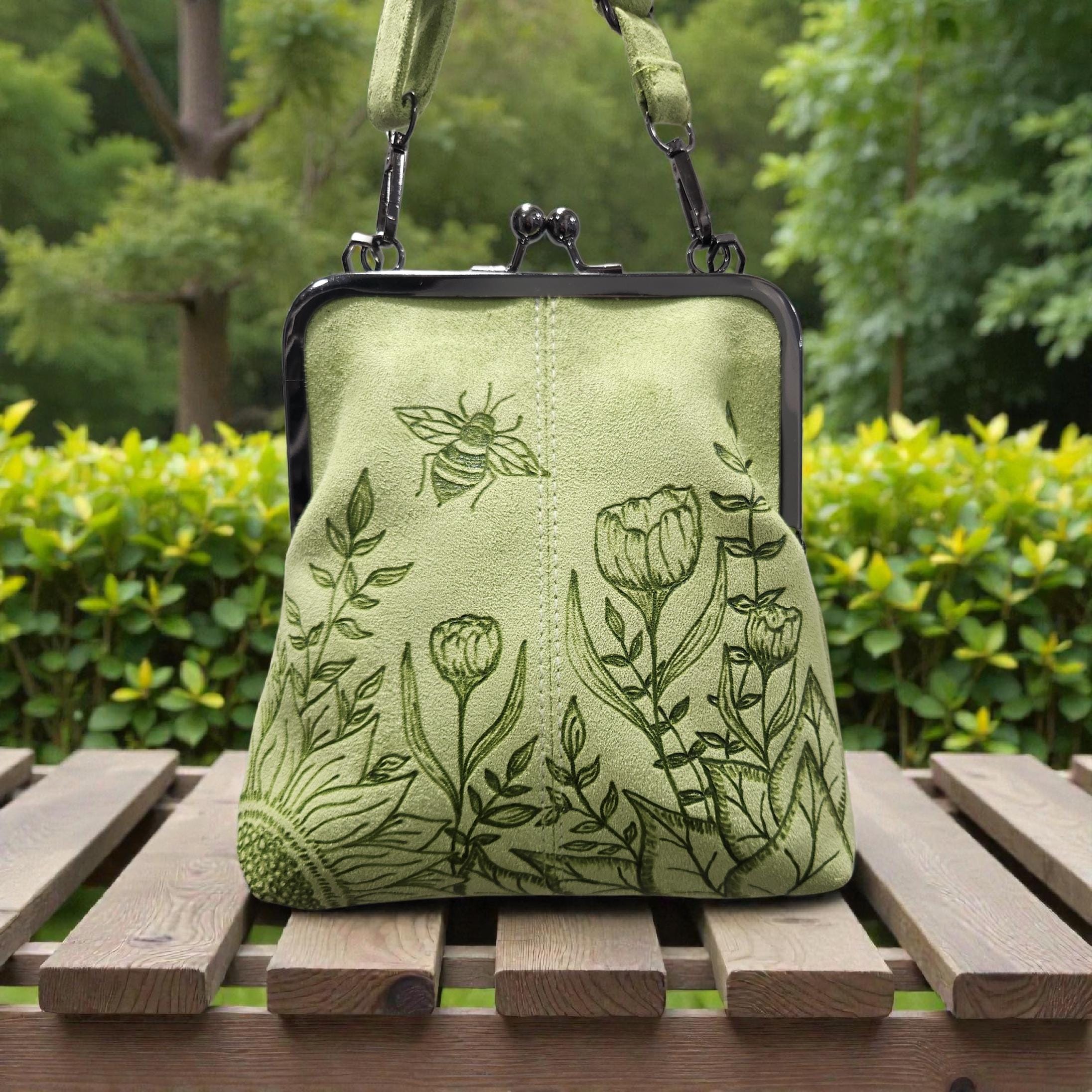 Really cute hand burned handbag. Fully lined with nice fabric. Has a great zippered inner pocket and a detachable handle. Comes with a long adjustable strap for crossbody use.