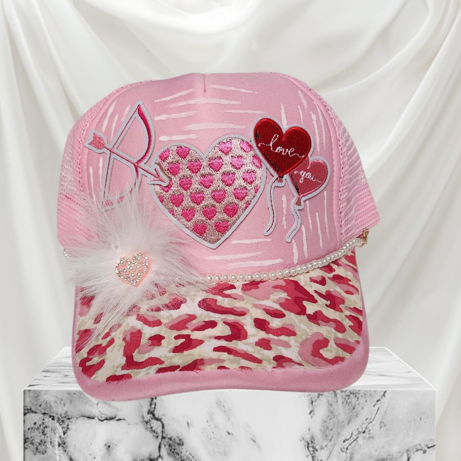 Really cute pink colored - valentines day heart - embellished with bling - adjustable baseball cap