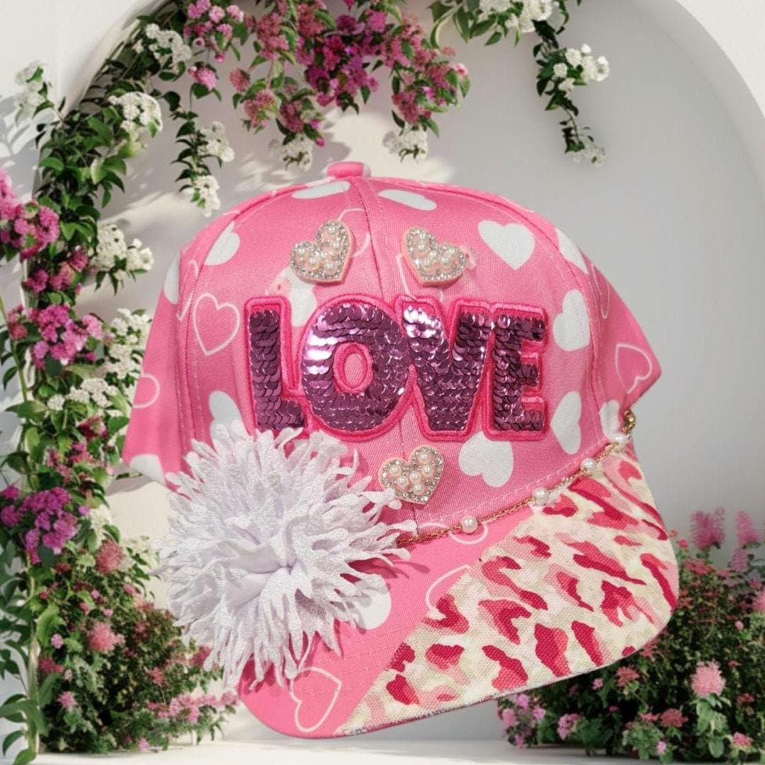 Really cute pink colored - valentines day heart - embellished with bling - adjustable baseball cap