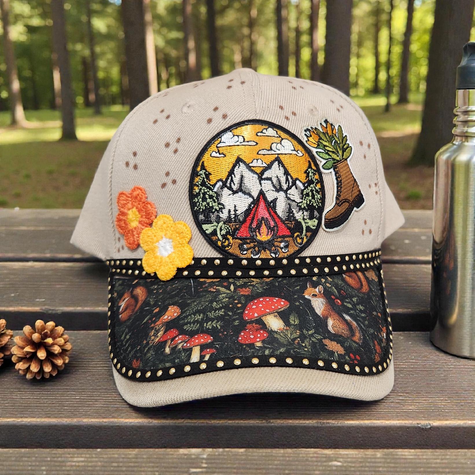 Really cute outdoor themed, one-of-a-kind, hand crafted, baseball cap.