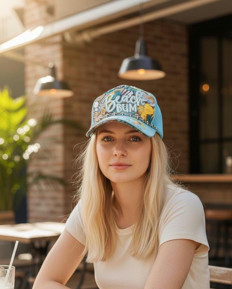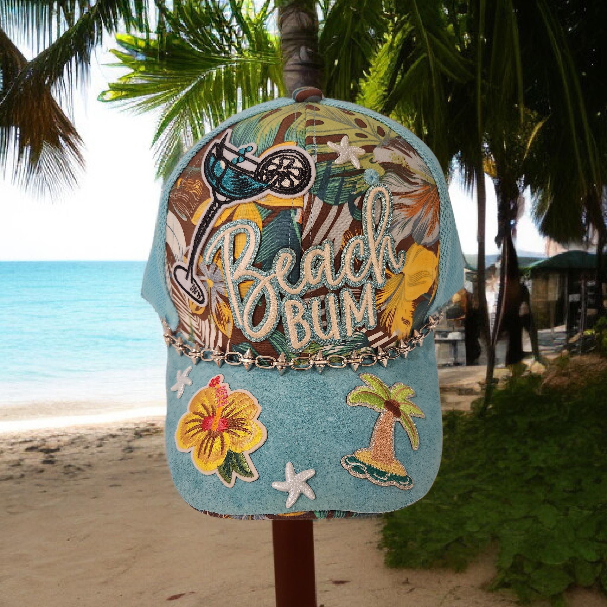 Really cute beach - tropical themed baseball cap. Hand crafted with patches and paint. Super cute hat