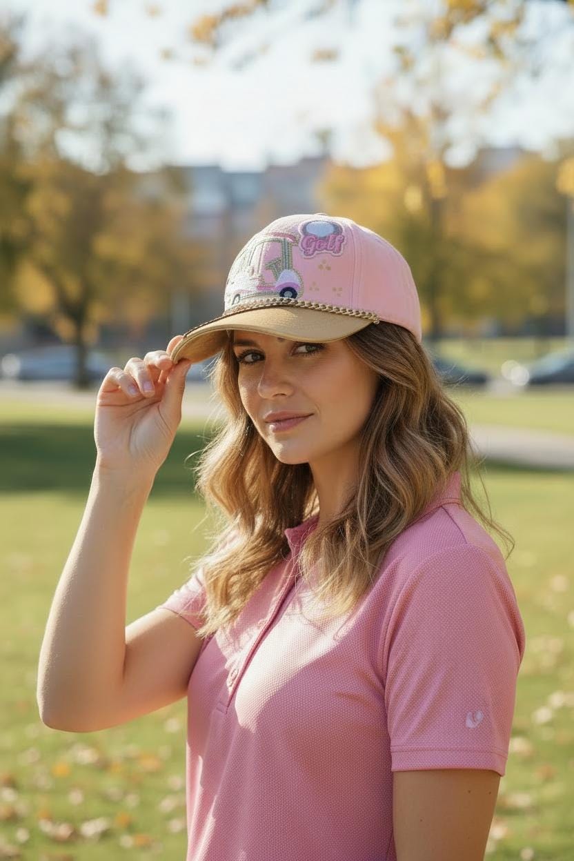 Fun - embellished - handcrafted- Pink Golf Cap - baseball cap