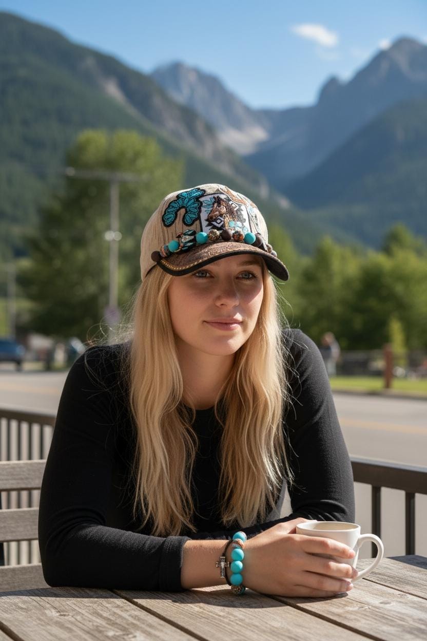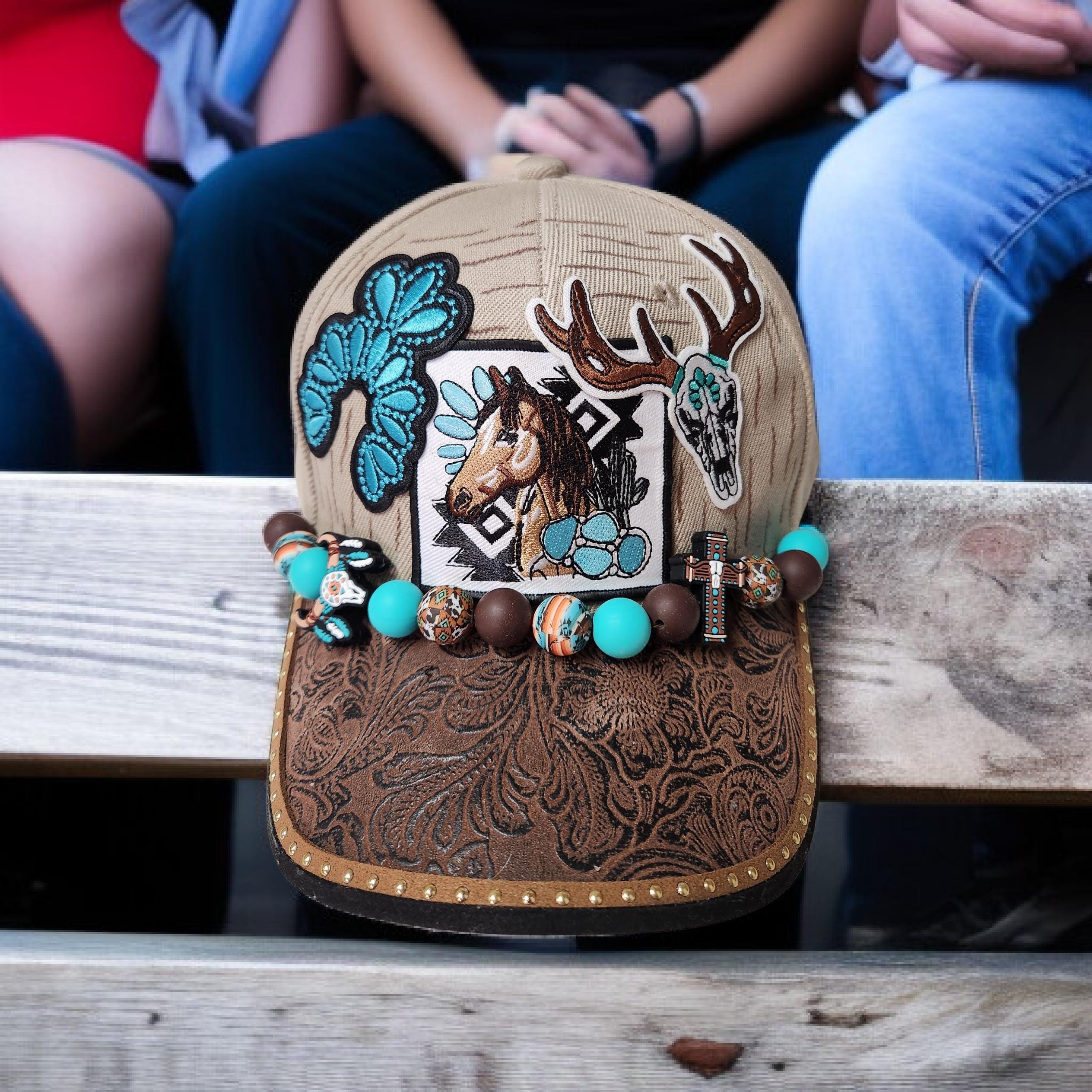 Really cute Rodeo - cowgirl style baseball cap. Hand crafted with patches and paint. Super cute hat for your outdoor cowgirl.