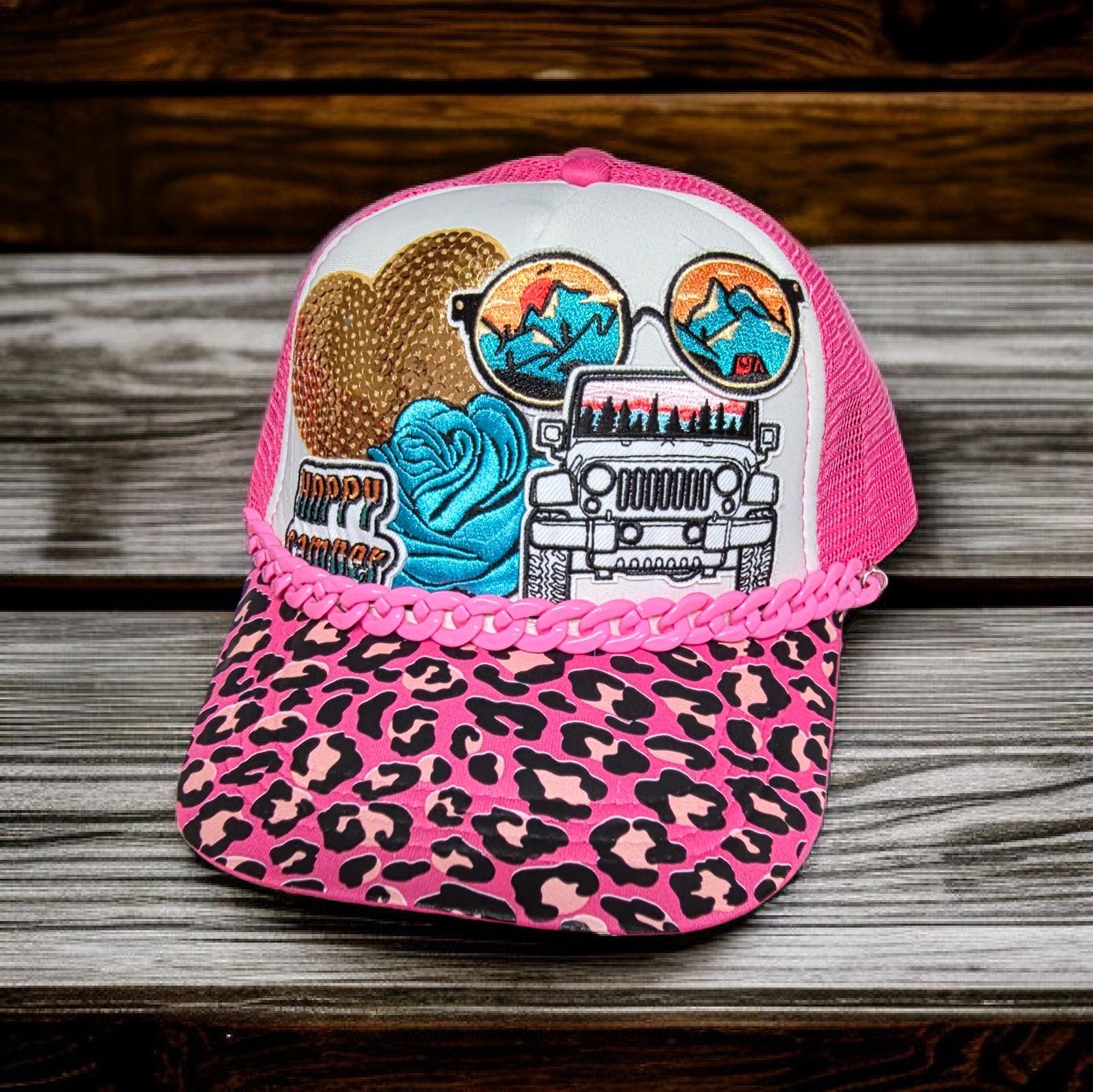 Really cute - outdoor themed baseball cap. Hand crafted with patches and paint. Super cute hat