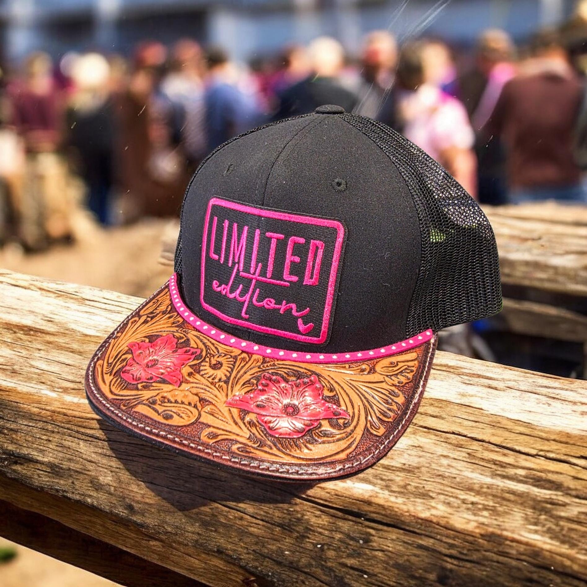 Really cute baseball cap with a Genuine tooled leather brim.